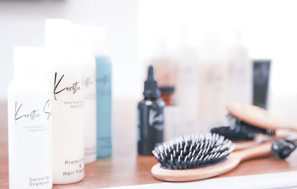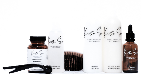 Para mi trabajo, enfocado en tratar problemas del cuero cabelludo y del cabello, utilizo actualmente exclusivamente los productos de Kerstin Serr, una querida amiga que, tras más de 25 años de experiencia profesional en diversas empresas internacionales del sector capilar, decidió lanzar su propia línea de productos.